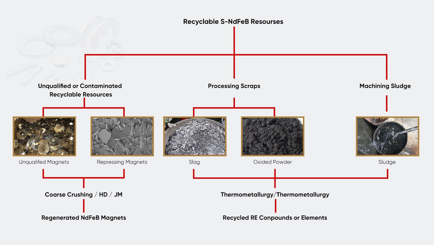 | Recikliranje magnetskog blata Magnetski mulj proizveden postupkom mljevenja magnetskog materijala koristi se za izdvajanje elemenata rijetkih zemalja posebnim postupkom, a preostali željezni prah može se koristiti kao metalurška sirovina, čime se postiže stopa iskorištenja otpadnih resursa od preko 90%. | Obrada otpadne tekućine za rezanje Za odvajanje ulja i vode u otpadnoj tekućini za rezanje koristi se napredna kombinirana tehnologija odvajanja ultrafiltracijske membrane. Kvaliteta pročišćene vode zadovoljava GB 8978-1996 1. razinu emisijskog standarda, a uljna faza se može rafinirati i ponovno koristiti. | Sustav za recikliranje otpadnih kalupa Uspostavite sustav upravljanja cijelim životnim ciklusom kalupa za izvođenje popravka laserskih obloga ili regeneracije metalurgijom praha na otpadnim karbidnim kalupima, povećavajući stopu recikliranja materijala kalupa na više od 60%. |